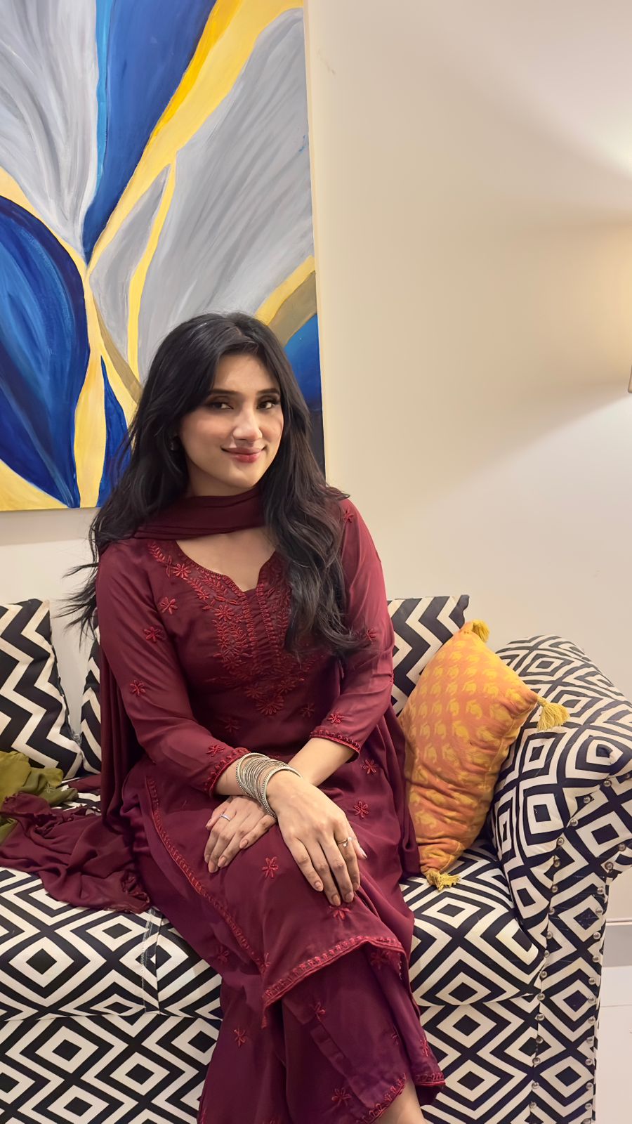 โ€ข Kurti paired with Dupatta.